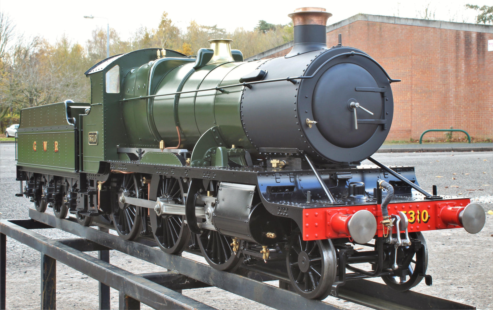 One of the most successful designs in locomotive history came about when the great Swindon innovator G J Churchward worked alongside the engineer H Holcroft (who would go on to work with Maunsell, Bulleid and Gresley). This format for the mixed traffic 2-6-0 from1911 would be not only co-opted by almost all the other big four companies but also by BR some 40 years later. 342 were built by Swindon works alone over a 22 year period and the last “mogul” was still in active use as late as 1964, a full 53 years after the initial design. This model is based on Ian Holder's design which captures the highlights of the original engines well. We do not know much about the builder, however it spent some time on display and on a garden railway in California, USA before arrival here at LMR. Despite such numbers, only 2 of the class survived into preservation.